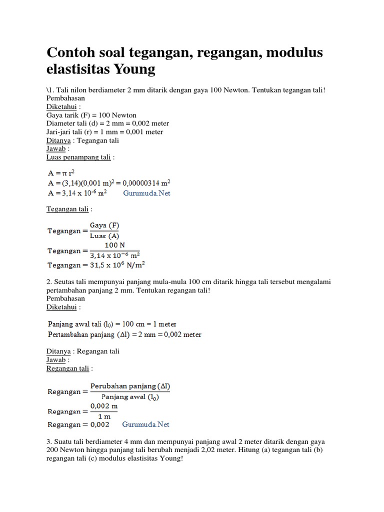 Kumpulan Contoh Soal Dan Pembahasan Soal Latihan Tegangan Regangan Modulus Elastisitas Young Serta Rumusnya Lengkap Masharist from 1.bp.blogspot.com We did not find results for: Maybe you would like to learn more about one of these? Contoh soal tegangan dan regangan. Check spelling or type a new query.